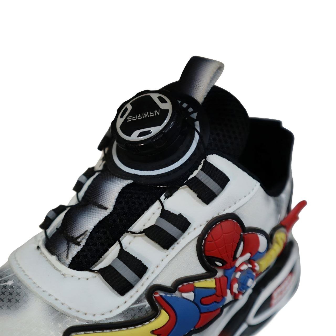 - ⚡ تصميم البطل الخارق: يزدان الحذاء برسومات مشرقة لشخصية بطل خارق (يشبه سبايدرمان)، مع مزيج جذاب من اللون الأسود، الأبيض، والأحمر.