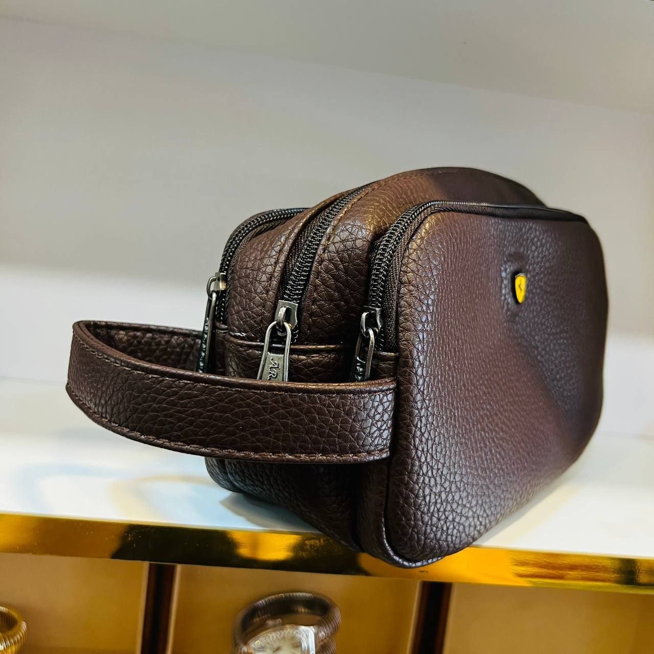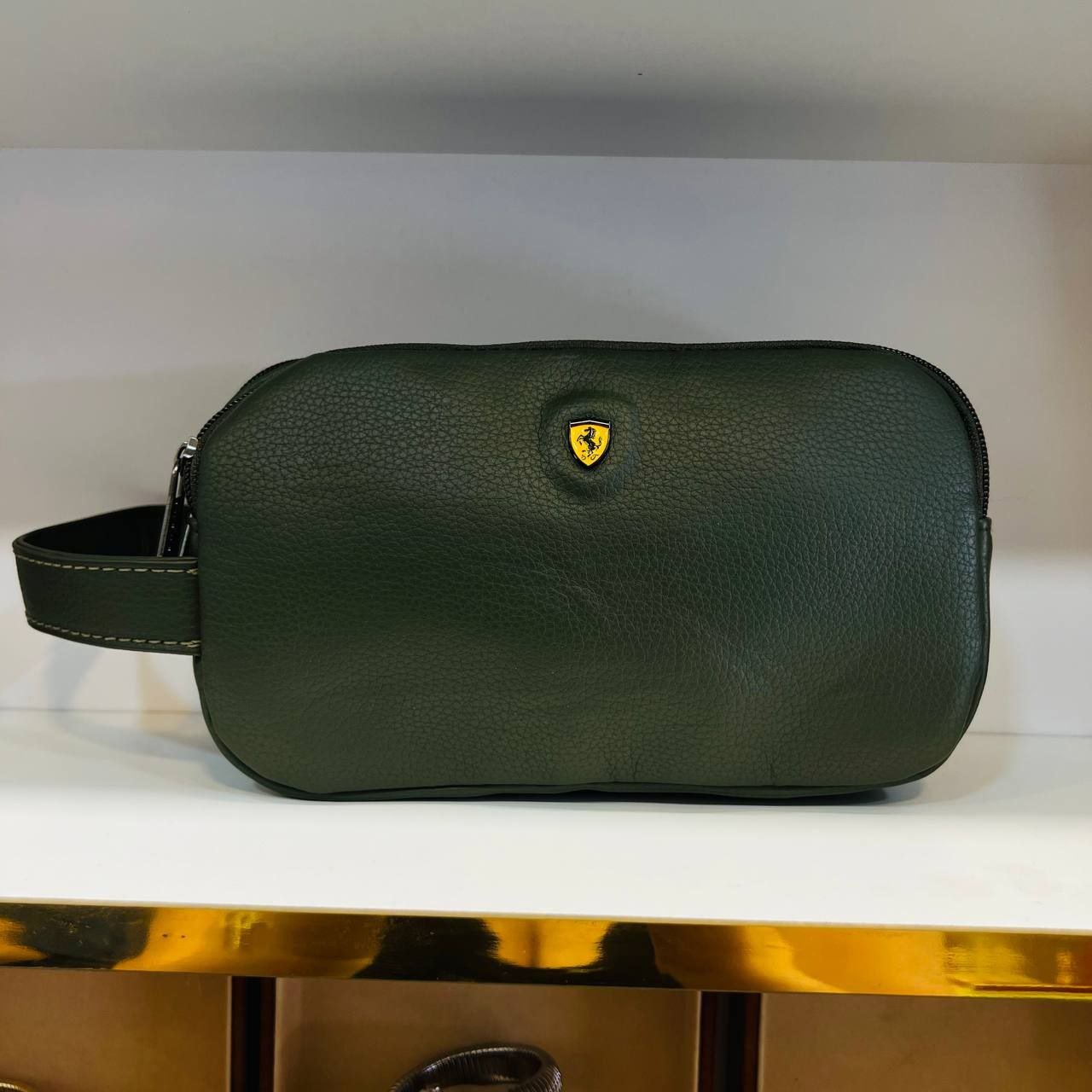 ارتقِ بأناقتك مع هذه الحقيبة اليدوية الفاخرة المصنوعة من الجلد الطبيعي عالي الجودة بلون أخضر زيتوني أنيق. تتميز بتصميم عصري وانسيابي مع لمسة رياضية راقية بفضل شعار Ferrari الأيقوني المثبّت في الأمام. مثالية لحمل مستلزماتك اليومية أو للاستخدام أثناء السفر. مزودة بسحاب علوي متين وحمالة جانبية مريحة لسهولة الحمل.