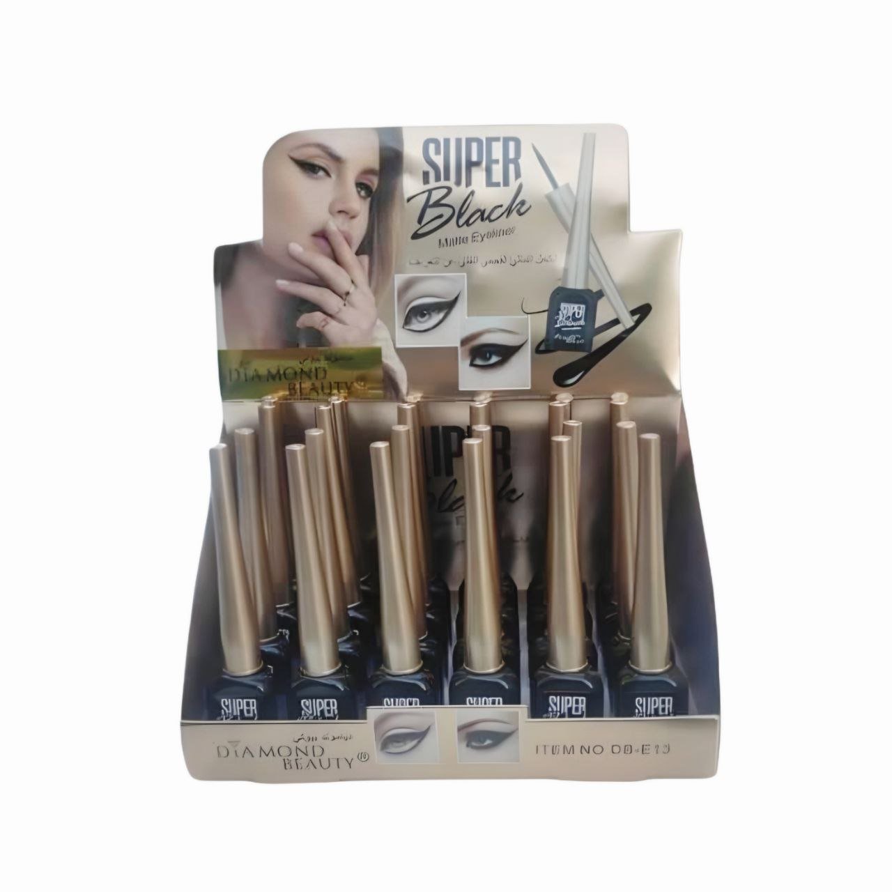 محدد عيون سائل “سوبر بلاك” (SUPER Black) من دايموند بيوتي. يتميز بتركيبة سوداء مطفأة غنية وكثيفة، تمنحك تحديدًا دقيقًا وجريئًا للعين. يأتي بفرشاة دقيقة لتطبيق سهل يمكن من خلاله رسم خطوط رفيعة أو أشكال كلاسيكية مثل “عين القطة” (Cat Eye). مثالي لإطلالة عيون درامية وجذابة.