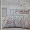 يتميز الطقم بنقشة فنية تشبه رسومات الألوان المائية لأغصان مزهرة باللون الوردي الرقيق والأخضر النضر، على خلفية أنيقة من اللون الرمادي الفاتح، مع لمسات من ألوان الباستيل الهادئة في الجهة الأخرى من الغطاء وأغطية الوسائد.